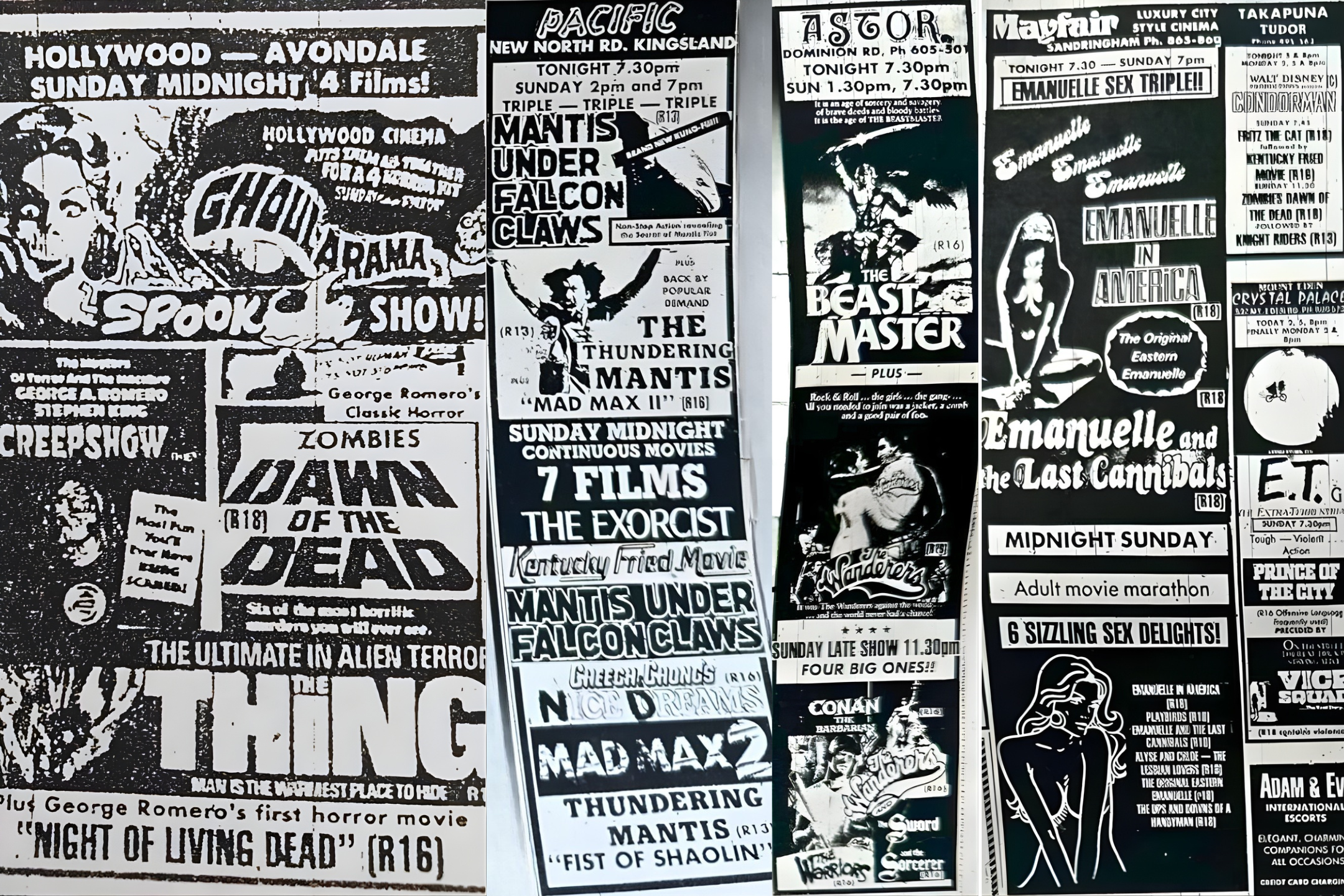 The guide recalled that movie marathons have a precedent in New Zealand, going back to some crazed programmers at Auckland suburban cinemas in the late 1970s and early 80s. Just take a look at some of these newspaper clippings:
